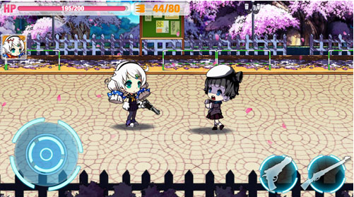 《崩坏学园2》作为一款横版动作闯关游戏,游戏在操作模式上采用了虚拟摇杆加武器设计键结合的操作方式。摇杆的灵活相应,极大的方便了玩家在操作上方向上的调整,结合武器设计键上的连续射击和装备切换射击,让玩家可以轻松上手的同时也给玩家埋下了努力提高风骚走位和武器快速切换的技巧操作“陷阱”。可能是由于iPhone手机自身屏幕大小上的局限性,导致虚拟摇杆让玩家在快速操作方向移动的同时,总会发生左右移动枪击方向上的的误差,不免让玩家觉得有点无奈。