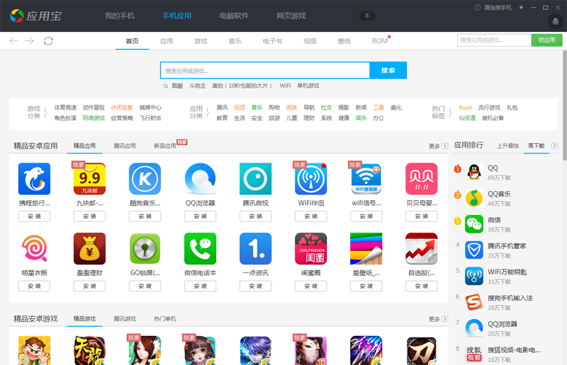 应用宝电脑版是腾讯公司推出的安卓应用程序下载中心,但应用宝不单单只是下载应用软件而已,它还能够一键Root,快速安全,并有海量rom让刷机变得更加完美。应用宝是史上最强的安卓系统优化、应用管理的手机助手。