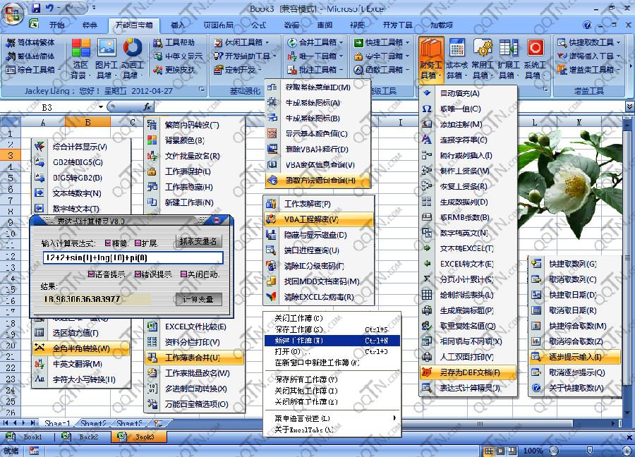 【VBA宏撤销还原】 新增VBA宏程式执行后可撤销还原功能,并在各个子程序中普遍应用,特别是综合工具箱、快捷工具箱、财务工具箱等均加入了执行后可撤销还原功能,能防止鼠标误点功能与误操作,称为可撤销还原版万能百宝箱。当然用户文档在出现误操作时也可以不保存而直接关闭退出即可。