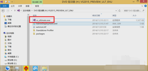 2、双击下载后的软件:vs2015.preview_ult_ENU.iso,将他加载到虚拟光驱中,点击vs_ultimate.exe,开始运行: