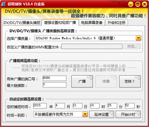 加入最完美WMV9编码支持,从此您设置WMV录像分辨率成为可能,而且广播视频将更加流畅清晰!