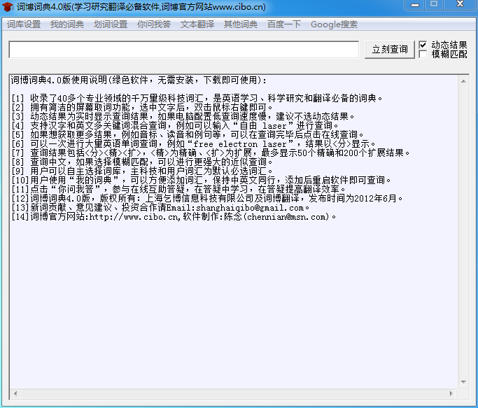 词博词典是由词博官方专为广大用户打造的单机版软件,无需联网,随时都能免费查词典。词博词典收录了几十个专业领域的词汇,集成;哦Bing翻译、Google翻译、爱词霸、有道词典等多个词典工具,方便实用的屏幕取词功能、动态结果和模糊匹配,还能自定义添加词典,功能丰富完善,是奇偶英语学习、翻译必备的词典软件。