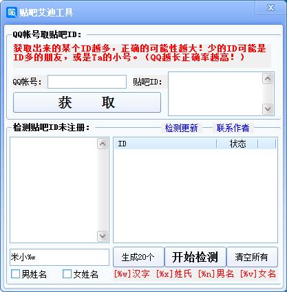 贴吧艾迪工具是一款专为百度贴吧制作的贴吧辅助工具,贴吧艾迪工具能够通过QQ帐号查询贴吧ID,还能够检测贴吧ID是否未注册,输入想要获取某人贴吧ID的QQ帐号,点击获取,即可获取出你想知道某人的贴吧ID。