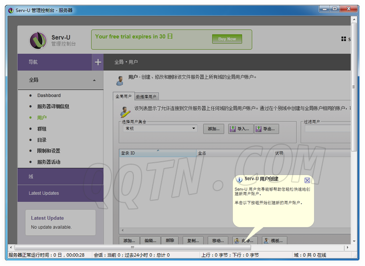 每个Serv-U引擎都能用来运行多个虚拟的FTP服务器,而虚拟的FTP服务器就称为“域”。