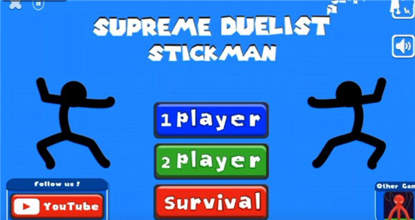 《至尊决斗火柴人》是一款横版动作冒险类手机游戏,游戏中玩家可以控制火柴人进行战斗,游戏内包含了多种场景,支持双人游戏,快来下载游戏开始战斗吧。