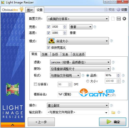 Light Image Resizer拥有很多不同的语言文件,当然也包括中文。调整图片大小时,你可以添加一个文件,也可以添加一整个文件夹。Light Image Resizer的主要功能是:你可以通过设置百分比,或者图片分辨率来把图像尺寸缩放到你想要的大小。并且通过保持宽高比,以及使用不同的缩放模式,可以 让图片不变形
