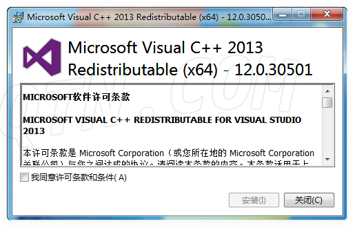 Visual C++ Redistributable Packages 安装运行时组件,这些组件是在未安装 Visual Studio 2013 的计算机上运行使用 Visual Studio 2013 开发的应用程序所必需的。