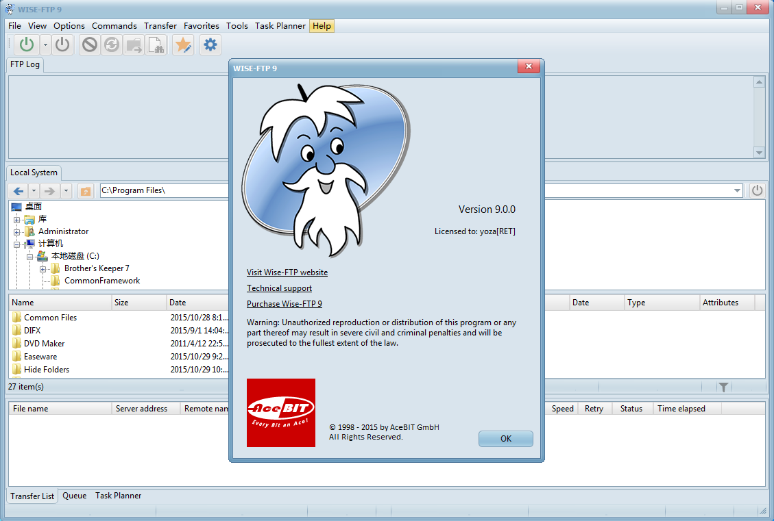 1. 安装 wiseftp9_Build 9.0.0_setup.exe