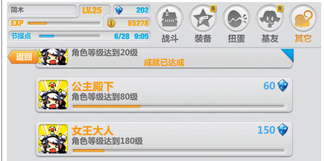 在主页面的“其他”—>“成就”中,可以查看玩家的所有成就,当完成特定的成就,即可获得水晶奖励。